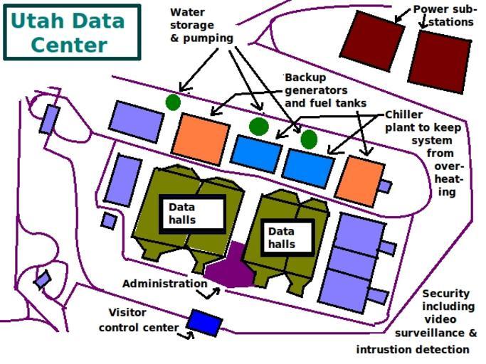 Keywords: Utah Data Center of the NSA in Bluffdale Utah.png Bluffdale Utah It will cost 2 billion and collect so-called yottobytes of information; a yottobyte is a septillion bytes 10 24 According to one report It ™s a state-of-the-art facility designed to support the intelligence community in its mission to in turn enable and protect the nation ™s cybersecurity It will collect a wide range of data about people to prevent terrorism In addition it will have powerful computers built to decipher encrypted information 2012-06-24 own Tomwsulcer Note the diagram was based on a sketch in Wired Magazine<br>thumb Utah_Data_Center_of_the_NSA_in_Bluffdale_Utah_vectorized svg cc-zero Uploaded with UploadWizard Utah Data Center |