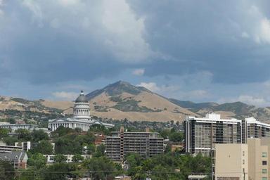 | Keywords: Utah State Capitol and front environs - 23 August 2012.JPG Utah State Capitol as seen from the parking garage at the Triad Center 2012-08-23 own Mangoman88 40 46 16 69 N 111 54 7 85 W region US_heading ENE cc-zero Uploaded with UploadWizard Utah State Capitol Triad Center |
