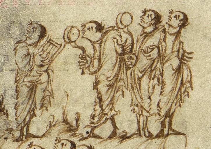 | Keywords: Utrechts-Psalter PSALM-149-PSALM-150 Psaltery and cymbols.jpg en From the Utrecht Psalter praising God with cymbals cymbalis in Latin The instrument to the left is a psaltery or harp likely a harp by modern naming standards c 850 a d http //psalter library uu nl/ author other versions http //psalter library uu nl/page p 172 res 3 x 0 y 731 PD-Art Utrecht Psalter Instruments in art Cymbals Cymbals in art Percussion instruments Percussion instruments in art Harps in art Harps Worship Anglo-Saxon art |