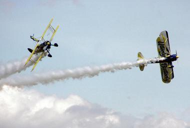 | Keywords: Utterly.butterly.aerobatics.arp.jpg The UK Utterly Butterly display team perform an aerobatic manoeuvre with their Boeing Stearmans at an air display in England <br> The apparently odd team name comes from a UK brand of margarine called Utterly Butterly Photographed by Adrian Pingstone in June 2004 and released to the public domain Arpingstone Utterly Butterly display team Taken with Olympus C-750UZ Smoke trails of aerobatic teams | ||||