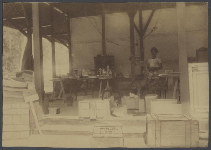 | Keywords: UvA-BC 300.403 - Siboga - overdekte ruimte naast de pasanggrahan op het eiland Saleyer.jpg nl Academische Collecties http //academischecollecties nl/search identifier 300 403 1899-1900 Siboga-expeditie naar Nederlands Oost-Indiƫ onder leiding van Max Wilhelm Carl Weber De overdekte ruimte werd gebruikt als laboratorium en opslagplaats Naast een tafel staat Bandong de bediende van het echtpaar Weber op een kist zit de scheepskat Bob of Titi en de scheepsvogel Piet een kasuaris loopt vij rond between 1899-03 1900-02 Academische Collecties http //academischecollecties nl/search text siboga;f1-type voorwerp;view list Institution Special Collections of the University of Amsterdam UvA-BC Expedition Wikipedia Creator Unknown According to several sources among others cite book Weber-van Bosse Anna Antoinette 1904 Een jaar aan boord H M Siboga Leiden E J Brill 2 10957037 the main photographer of the Siboga Expedition was Creator Hugo Frederik Nierstrasz Authorship of individual photographs is however not known with certainty and other crew members of the expedition also took photographs Therefore it is safest to assume anonymous authorship Custom license marker 2014 07 11 Anonymous-EU Photographs of the Siboga Expedition Uploaded with UploadWizard Selayar Regency |