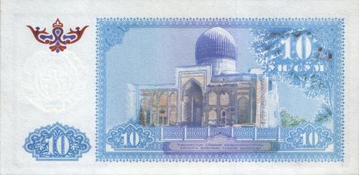 | Keywords: UZS10 1994 back.jpg 10 cум узбекистана 1994 10 soms of Uzbekistan 1994 Ouzbekistan Billet de 10 sums verso own scan 1994 Цент альный банк Республики Узбекистан The Central bank of the Republic of Uzbekistan Ўзбекистон Республикаси ма казий банки PD-UZ-exempt banknotes Banknotes of Uzbekistan Gur-e Amir - Exterior views Gur-e Amir on banknotes Banknotes with a face value of 10 Blue banknotes | ||||