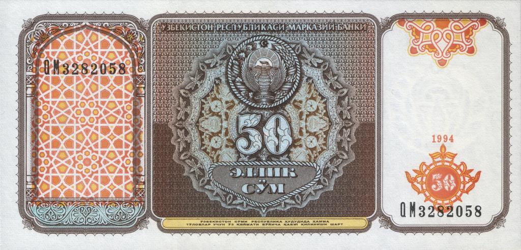 | Keywords: UZS50 1994 front.jpg  50 cум узбекистана 1994 50 soms of Uzbekistan 1994 own scan 1994 Цент альный банк Республики Узбекистан The Central bank of the Republic of Uzbekistan Ўзбекистон Республикаси ма казий банки PD-UZ-exempt banknotes  Banknotes of Uzbekistan Banknotes with a face value of 50 Brown banknotes Coats of arms of Uzbekistan on banknotes 1994 banknotes |