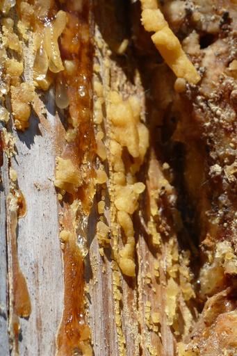 Keywords: vaginal discharge yellow resin bitumen conifer forest macro tribe close harz exit resin discharge wound beautiful