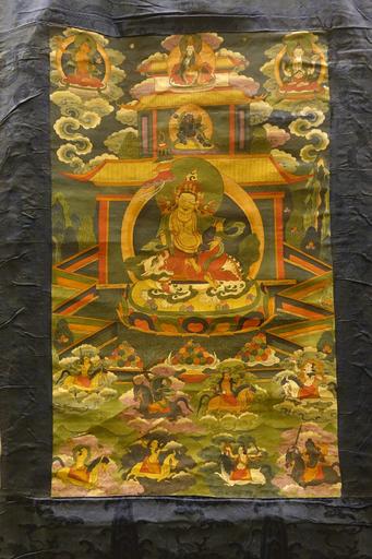 Keywords: Vaishravana, Tibet, Neoteric Times - Sichuan Provincial Museum - Chengdu, China - DSC04509.jpg en Exhibit in the Sichuan Provincial Museum 四 博物院 also known as the Sichuan Museum 251 Huanhua S Road Chengdu Sichuan China Photography was permitted in the museum without restriction This work is old enough so that it is in the public domain 2015-09-24 02 35 46 own Daderot other versions PD-old-100 cc-zero Thangka in the Sichuan Provincial Museum |