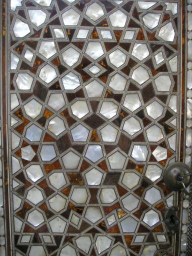 | Keywords: Valide Sultan Dairesi Harem Topkapi 2007 96.JPG Detail of a cupboard door with mother-of-pearl in the apartments of the Valide Sultan in the Topkapi Palace Istanbul Own 2007-08 Gryffindor Apartments of the Queen Mother Topkapı Palace blurry Doors in Istanbul Mother of pearl objects Islamic wood carving Istanbul Intarsia in Topkapı Palace |