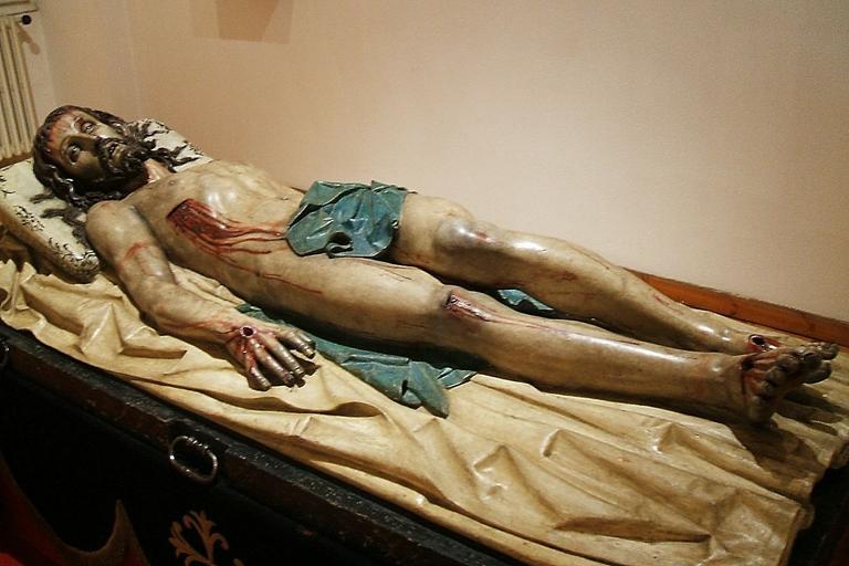 | Keywords: Valladolid - Real Mº de San Joaquin y Santa Ana 4.jpg Cristo Yacente obra de Gregorio Fernández 1634 en el Museo del Real Monasterio de San Joaquín y Santa Ana MM Cistercienses Valladolid España/Spain own 2008-03-23 Zarateman San Joaquín and Santa Ana Monastery in Valladolid Baroque wood carving in Spain Gregorio Fernández Statues of Jesus at the tomb Cofradía del Santo Entierro Valladolid Jesus at the tomb in Spain Statues of Jesus in Castile and León | ||||