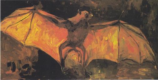 | Keywords: Van Gogh - Die Fledermaus.jpeg Artwork Creator Vincent van Gogh disputed Die Fledermaus Paris Second Semester 1886 oil canvas 41 x 79 cm Institution Van Gogh Museum Amsterdam accession number object history credit line Van Gogh catalogues 177a 1192 repro from art book PD-old-100 Van Gogh 1886-1887 Paris Paintings by Vincent van Gogh in the Van Gogh Museum Bats in art Bats in flight Oil paintings of animals 19th-century oil on canvas paintings in the Netherlands Paintings of mammals | ||||
