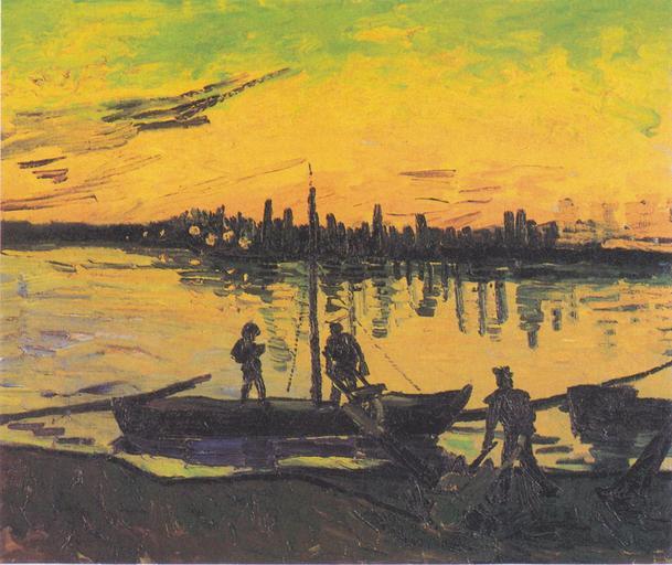 Keywords: Van Gogh - Hafenarbeiter in Arles.jpeg Artwork Creator Vincent van Gogh Arles 1888 08 oil canvas cm 54 64 Institution Museo Thyssen-Bornemisza accession number 557 1965 7 object history credit line Van Gogh catalogues 438 1571 http //www museothyssen org/thyssen/ficha_obra/394 Museo Thyssen-Bornemisza Colección Permanente<br/>http //www vangoghgallery com/catalog/Painting/67/Coal-Barges html vangoghgallery com repro from art book PD-old-100-1923 DEFAULTSORT Van Gogh 1888 08 The Stevedores in Arles Museo Thyssen-Bornemisza Coal Barges F438