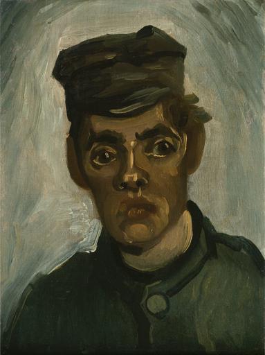 | Keywords: Van Gogh - Kopf eines jungen Bauern mit Mütze2.jpeg Artwork Creator Vincent van Gogh Kopf eines jungen Bauern mit Schirmmütze Head of a young peasant in a peaked cap Tête d'un jeune paysan avec une casquette Hoofd van een jonge boer met een pet Gijsbertus de Groot Nuenen 1885 03 Oil on canvas cm 44 5 33 5 Institution Nelson-Atkins Museum of Art Gallery P32 37-1 Credit line Purchase William Rockhill Nelson Trust Van Gogh catalogues 165 688 http //www vangoghgallery com/catalog/Painting/230/Head 20of 20a 20Young 20Peasant 20in 20a 20Peaked 20Cap html vangoghgallery com 1 repro from art book<br/>2 http //nelson-atkins org/collections/iscroll-objectview cfm id 30365 The Nelson-Atkins Museum of Art Kansas City Other versions PD-old-100 DEFAULTSORT Van Gogh 1885-03 Nuenen Head of a Young Peasant in a Peaked Cap F_165 JH_688 jpg Head of a young peasant in a peaked cap by Vincent van Gogh |
