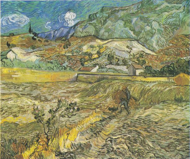 Keywords: Van Gogh - Weizenfeld hinter dem Hospital Saint-Paul mit Bauer.jpeg Artwork Creator Vincent van Gogh de Weizenfeld hinter dem Hospital Saint-Paul mit Bauer en Enclosed Wheat Field with Peasant / Landscape at Saint-Rémy / Wheat Field behind Saint-Paul Hospital with farmer Saint-Rémy early date 1889 10 oil canvas in 29 36 25 institution Indianapolis Museum of Art Sidney and Kathy Taurel gallery - H206 44 74 credit line Gift of Mrs James W Fesler in memory of Daniel W and Elizabeth C Marmon Van Gogh catalogues 641 1795 http //www imamuseum org/collections/artwork/landscape-saint-r C3 A9my-enclosed-field-peasant-gogh-vincent-van The Indianapolis Museum of Art<br/>http //www vangoghgallery com/catalog/Painting/110/Enclosed 20Wheat 20Field 20with 20Peasant html vangoghgallery com repro from artbook Other versions PD-old-100-1923 1890 DEFAULTSORT Van Gogh 1889 Enclosed Wheat Field with Peasant Indianapolis Museum of Art Enclosed Wheat Field with Peasant by Vincent van Gogh |