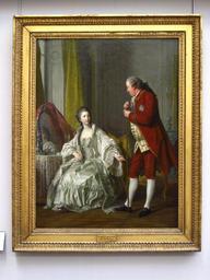 | Keywords: Van Loo - Marigny (cadre).JPG  Artwork Creator Louis-Michel van Loo Le Marquis de Marigny et sa femme Alternate titles Frère cadet de la marquise de Pompadour Marigny 1721-1781 fut le directeur des Bâtiments de Louis XV de 1751 à 1773 Il est représenté avec sa jeune épouse de dix-huit ans née Marie-Françoise Constance Julie Filleul 1751 - 1822 deux années après leur mariage 1769 Oil on canvas Size m 0 975 1 296 Museum Louvre Sully - 2 e étage - Boucher - Salle 46 00000104461 louvre online 11556 Christie's online 3072179 5192 14 object history by 1781 Abel-François Poisson de Vandières marquis de Marigny et de Ménars 1727-1781 inheritance marquise de Marigny inheritance Adélaïde Filleul acquisition comte August-Charles-Joseph de Flahaut acquisition Lady Emily Fitzmaurice acquisition A E H Digby ProvenanceEvent 1951-06-20 sale Digby Paris by 1951 Agnew ™s ProvenanceEvent 1994-06-10 auctioned Christie's London price GBP 331500 ProvenanceEvent 1994 gift Louvre Paris Société des amis du Louvre credit line Don de la Société des Amis du Louvre 1994 accession number louvre number 1994-17 00000104461 Sammyday 2012-03-17 <gallery> Van Loo - Le Marquis de Marigny et de sa femme 1769 jpg high resolution Louvre-peinture-francaise-p1020331 jpg low resolution </gallery> PD-old-100 DEFAULTSORT 1769; Poisson de Vandière framed Paintings by Louis-Michel van Loo French paintings in the Louvre - Room 46 Abel-François Poisson de Vandières 1760s oil on canvas paintings in France 1760s paintings in the Louvre 1760s portrait paintings from France 1769 paintings in France 18th-century family portraits 18th-century oil portraits of sitting women at full length 18th-century oil portraits of standing men at full length 18th-century people of France 18th-century portrait paintings in interiors 18th-century portrait paintings in the Louvre 18th-century profile portraits of men Canes in portrait paintings Cosmetics in art Deshabille in art Dressing tables Eye contact in art Females with white dresses in art Marchionesses of France Gift of the Société des Amis du Louvre Habit à la française in portrait paintings Leaning people in art Male shoes in portrait paintings Painting frames Paintings of people from France Marigny Panniers clothing in portrait paintings Portrait paintings of wedded couples Portraits with mirror Powdered hair in art Powdered wigs in art Red clothing in art male Males with red coats in art Rococo interiors Sash of the Order of the Holy Spirit in portrait paintings Star of the Order of the Holy Spirit in portrait paintings 1760s dresses |