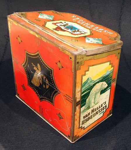 | Keywords: Van Melles IJsbeertjes, oranje blik, foto 4.JPG Very old packaging of a Dutch product that is not produced and/or not sold any more Photographed at a collector of Droste memorabilia and old tin cans For more info see http //www tincollectors nl/ tincollectors nl or email info tincollectors nl own 2014-04-11 11 31 23 Alf van Beem CC-Zero Trademarked Sweets tins Van Melle | ||||