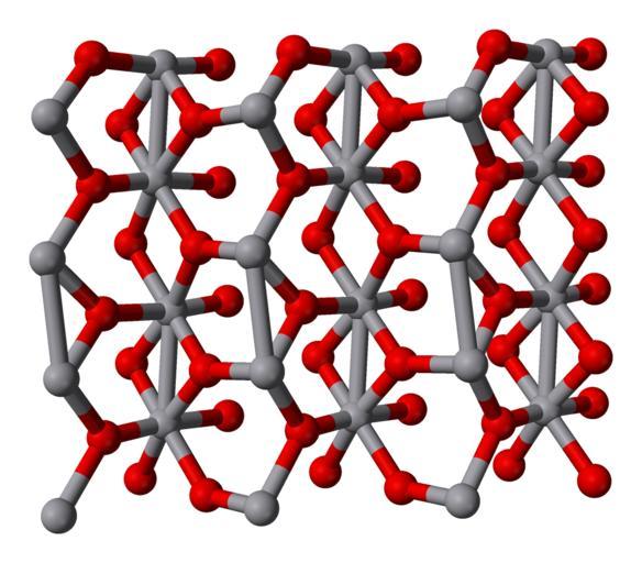 Keywords: Vanadium(IV)-oxide-layer-3D-balls.png Ball-and-stick model of part of the crystal structure of vanadium IV oxide VO<sub>2</sub> own 2007-11-13 Ben Mills Benjah-bmm27 Images by Ben Mills Vanadium IV oxide Crystal structures of oxides