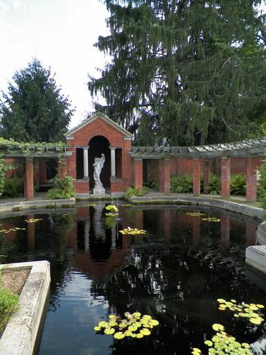 Keywords: vanderbilt mansion gilded age hyde park historic estate garden statue pond wealthy arch column lily pad