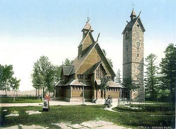 Keywords: Vang temple.jpeg Vang temple pol Świątynia Wang Karpacz Poland Postcard from 1900 source http //hdl loc gov/loc pnp/ppmsca 00879 Drozdp 21 08 20 November 2005 UTC PD-old Vang Stave Church Artworks missing infobox template