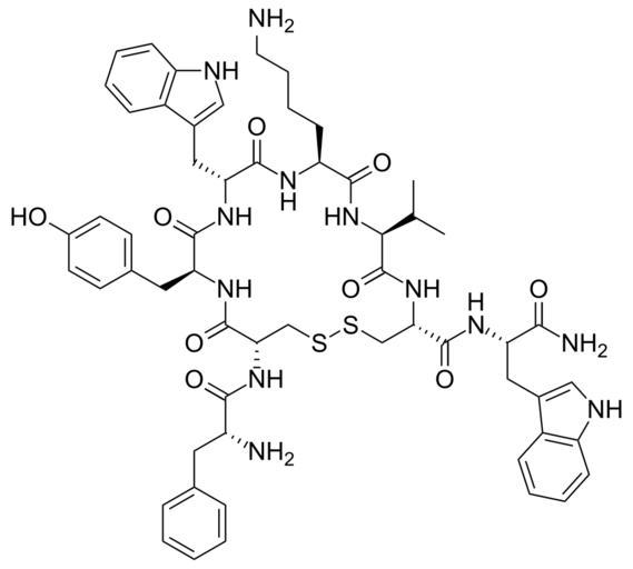 Keywords: Vapreotide.svg Chemical structure of vapreotide Own 11 59 29 August 2011 UTC Ed Edgar181 Peptides Antineoplastic agents