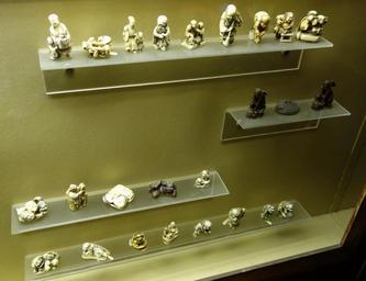 | Keywords: Various netsuke - Fairbanks Museum and Planetarium - DSC04345.JPG en Exhibit in the Fairbanks Museum and Planetarium St Johnsbury Vermont USA This artwork is old enough so that it is in the public domain Photography was permitted in the museum without restriction 2013-08-18 13 19 53 own Daderot PD-old-70 cc-zero Art of Japan in the Fairbanks Museum and Planetarium Uploaded with UploadWizard Netsuke | ||||