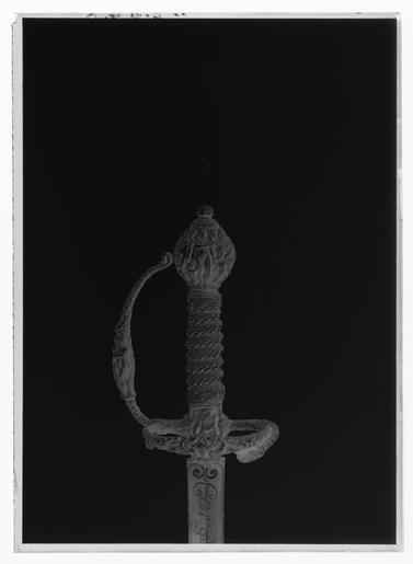 | Keywords: Värja, Frankrike 1658-1659 - Livrustkammaren - 69980-negative.tif Fäste av mörkanlöpt rikt snidat stål Knapp bukig med avsmalnande över- och nederdel Handbygel tämligen flack med vidgat mittparti Pareranordningen i övrigt bestående av en oval kryssbygel på utsidan en mycket kort nedåtböjd främre parerstång och en tämligen lång bakre parerstång spiralformigt böjd utåt-inåt Den snidade orneringen yttäckande På knappens fram- och baksida en karyatid med uppåtböjda armar på utsidan mellan karyatiderna figurscen med tre stående nakna kvinnor nedtill åtföljda av en påfågel och en Cupido till höger en sittande man med en stav i vänstra handen och ett äpple i den andra Paris väljer vem som är den skönaste kvinnan Juno Venus eller Minerva ; på insida en kentaur en stående naken man nedtill män som brottas eventuellt kentauerns strid mot lapitherna Figurscener återfinns även på handbygelns mittparti i form av stående nakna kvinnor på kryssets vertikalt utdragna ut- och insidor Herkules dödar jätten Antaeus Herkules bekämpar den den kretensiska tjuren samt på kryssbygelns mitt i form av en maskaron <br/>Kavellindning av tvinnad tunn silvertråd omväxlande med sju varv tvinnade grövre trådar av samma material dessa bestående av två parter vilka vardera i sin tur utgöras av tvinnade trådar; upptill och nedtill en flätad' krans av tvinnad förgylld tunn silvertråd <br/><br/>Klinga rak tvåeggad slipad med två jämnbreda något konkava skär På starka delen mot nedetsad blånerad botten förgylld inskription i skrivstil På utsidan Car Gust Sereniss Suec Rex På insidan Belli Pacisque Sequester Carl Gustav den mest strå-lande konung av Sverige förmedlare av krig och fred Inskriptionerna inom en bård av förgylld rak rand ändarna insvängda original caption ca other date - 1658 1659 steel b1 - Blankvapen - fäste material stål - steel b2 - Blankvapen - klinga material stål - silver thread b6 - blankvapen - kavel och kavelklädsel material silvertråd size mm 957 size mm 111 size mm 785 klinga size mm 25 klinga g 670 LRK Karl X Gustav av Sverige Gallica 1945 Basutställning Modelejon 2002 Vapens utsmyckning föredrag av Magnus Green och Florence Villén 17 feb 2011 för Vapenhistoriska Sällskapet 2011 Övre korridoren Car Gust Sereniss Suec Rex Belli Pacisque Sequester anv b2 - blankvapen - klinga; Karl X Gustav av Sverige Car Gust Sereniss Suec Rex Belli Pacisque Sequester anv b2 - blankvapen - klinga; Karl X Gustav av Sverige place of origin original filename LN_B12068_014948 47350 inventory number LRK 10776 69980 CC0 Värja Frankrike 1658-1659 - Livrustkammaren - 69980 tif <gallery caption Different images of same object > File Värja Frankrike 1658-1659 - Livrustkammaren - 17588 tif File Värja Frankrike 1658-1659 - Livrustkammaren - 68952 tif </gallery> |