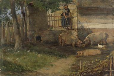 | Keywords: Varkens bij een boerderij Rijksmuseum SK-A-2088.jpeg accession number SK-A-2088 Guillaume Anne van der Brugghen credit line nl Drie varkens eten en wentelen zich in de modder bij een boerderij Achter een hek staat een meisje met een stok drager Height cm 24 drager Width cm 34 exhibition history Institution Rijksmuseum Technique oil canvas object history Acquisition 1903 object type Potential derivatives exist check http //commons wikimedia org/w/index php search Rijksmuseum+SK-A-2088 this search PD-US PD-old Data and photography rights All data and all images made available through the API are either in the public domain or are subject to a CC0 license https //www rijksmuseum nl/en/api/terms-and-conditions-of-use cc-zero place of creation http //www rijksmuseum nl/collectie/SK-A-2088 Varkens bij een boerderij Q17327324 Uploaded with GWToolset Varkens bij een boerderij Rijksmuseum SK-A-2088 http //www rijksmuseum nl/media/assets/SK-A-2088 Images uploaded by Fæ Images from the Rijksmuseum Paintings by Guillaume Anne van der Brugghen in the Rijksmuseum Amsterdam Guillaume Anne van der Brugghen Pigs in the Netherlands |