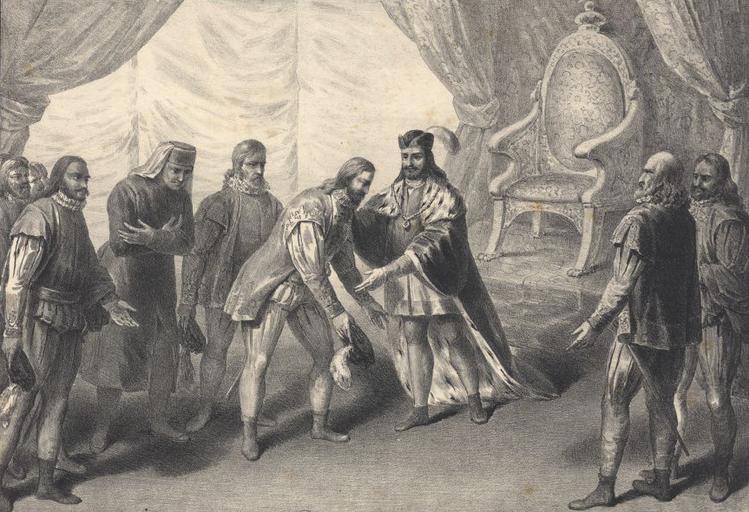 | Keywords: Vasco da Gama, chegando de descobrir a Índia, é recebido por El-Rei D. Manuel em acto público e solemne.jpg Vasco da Gama chegando de descobrir a Índia é recebido por El-Rei D Manuel em acto público e solemne Biblioteca Nacional de Portugal http //purl pt/4665<br/>Cota local E 349 V - Dim fol 44x32 cm ca 1839 Maurício José do Carmo Sendim 1786-1870 PD-old-100 Institution Institution Biblioteca Nacional de Portugal Vasco da Gama Manuel I of Portugal in engravings Images from the Biblioteca Nacional de Portugal Files by User Dantadd |