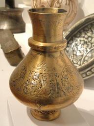 Keywords: Vase with Inscription Bands and Arabesques, view B, mid 14th century, Mamluk period, Egypt or Syria, incised brass with silver inlay - Sackler Museum - DSC02517.JPG Exhibit in the Sackler Museum Harvard University Cambridge Massachusetts USA The museum permitted photography of this artwork without restriction This artwork is in the public domain because the artist died more than 70 years ago Daderot 2012-11-17 12 23 31 Daderot cc0 cc0 Near Eastern metalwork in the Sackler Museum Mamluk metalwork Metalwork of Egypt |