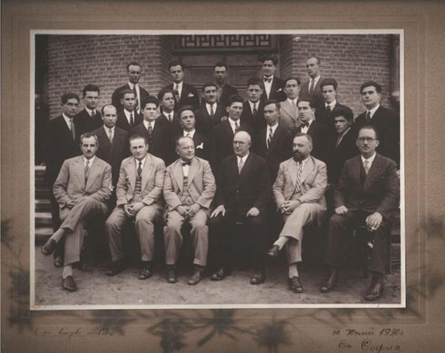 Keywords: Vasil Stoyanov Boris Stefanov Todor Dimitrov Temelko Ivanchev Toma Zahariev Metodi Ruskov.jpg Вто ият випуск лесовъди п ед Аг ономо-лесовъдния факултет сега Биологически факултет юни 1930 година П еподавателите седнали отляво надясно Васил Стоянов лесоползване Бо ис Стефанов денд ология анатомия на дъ вото го ска фитоценология Тодо Димит ов частно лесовъдство го ски култу и Темелко Иванчев го ска таксация лесоуст ойство Тома Заха иев общо лесовъдство етоди Русков общо лесовъдство scanned 1930-06 anonymous Anonymous-EU Foresters from Bulgaria University of Forestry Sofia Prilep |
