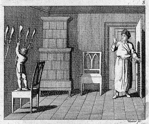 | Keywords: Vater Roderich unter seinen Kindern Kupferstich.jpg de Knabe der von seinem Vater dabei überrascht wird wie er ein Gewehr von der Wand nehmen will Kupferstich; Illustrration zu Christian Fr Sintenis Vater Roderich unter seinen Kindern Ein Volksbuch Wittenberg und Zerbst S G Zimmermann 1783 1783 engraving http //www bassenge com Bassenge other versions PD-old-100 Wunder family Images from Galerie Bassenge 1783 engravings Children with weapons Guns in art Mischievous children in art Tiled stoves in art |
