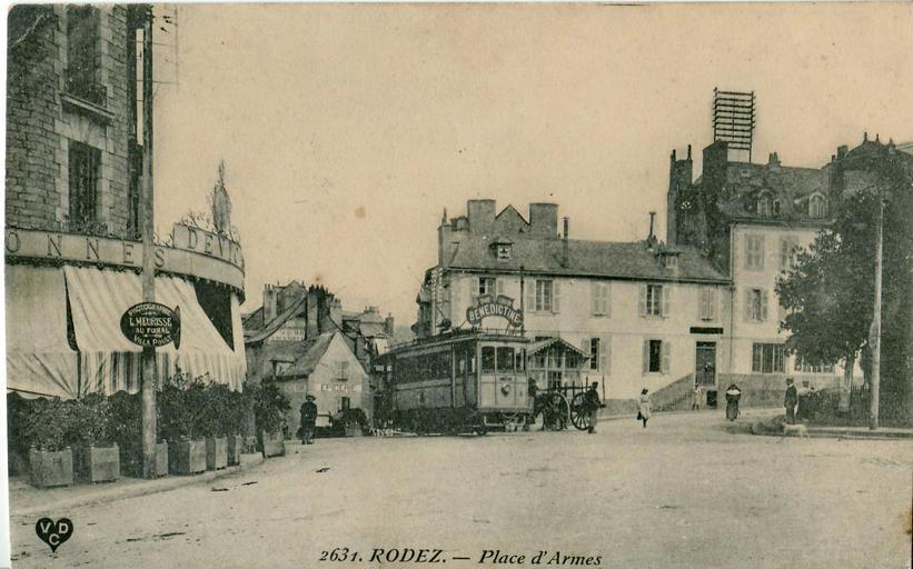Keywords: VDC 2631 - RODEZ - Place d'Armes.JPG RODEZ - Place d'armes Collection personnelle Scanné par Claude_villetaneuse Avant la Première Guerre mondiale pd-old Tramway de Rodez History of Rodez