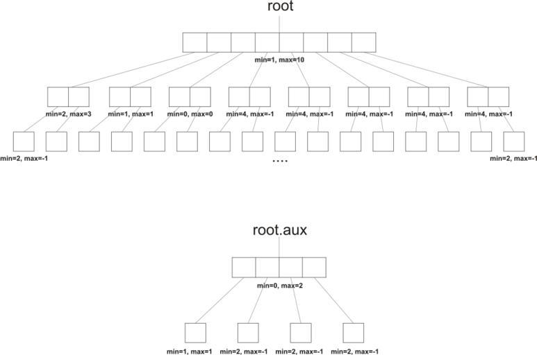 Keywords: VebDiagram.svg en An example Van Emde Boas tree of dimension 5 and the root's aux structure after 1 2 3 5 8 and 10 have been inserted own Gailcarmichael 2009-12-20 Computer science