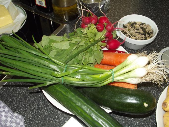 Keywords: vegetables frisch healthy red yellow onion carrots zucchini cucumber vegetarian diversity tomatoes