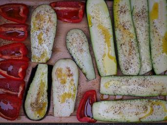 Keywords: vegetables grilled vegetables zucchini paprika peppery spicy seasoned food healthy red green rich in vitamins