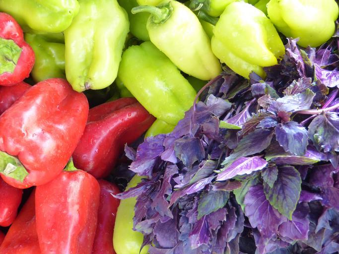 Keywords: vegetables healthy tasty nutrition paprika red yellow basil