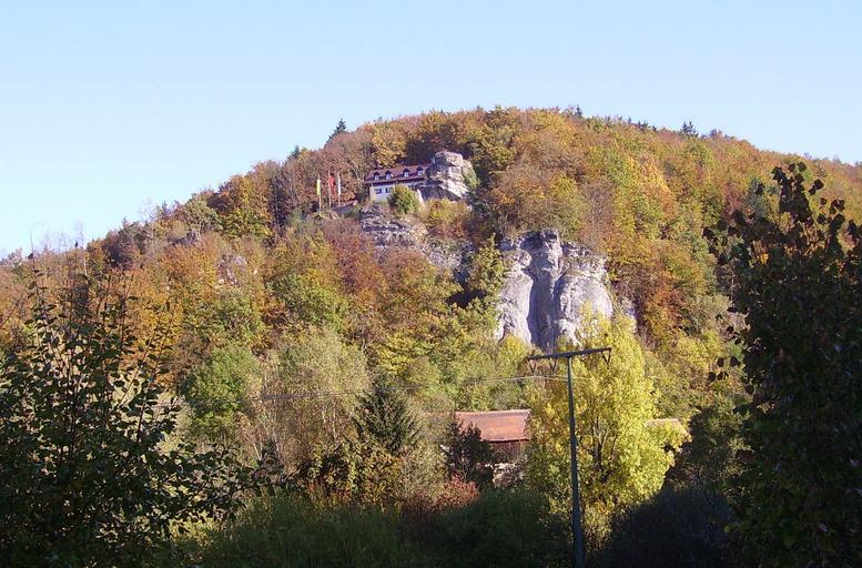 | Keywords: Veilbronn Bergwacht.jpg view of Veilbronn part of Heiligenstadt in Oberfranken in northern Bavaria Germany own own photography 2007-10 Immanuel Giel 11 07 29 October 2007 UTC Veilbronn Rock formations of Franconian Switzerland Bergwacht Bayern |
