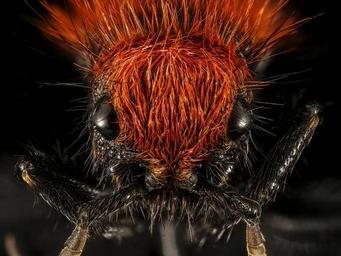 Keywords: velvet ant wasp flightless insect macro overview head face eyes wildlife nature close up sting mounted wingless hairy painful