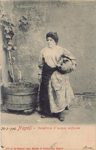 | Keywords: Venditrice d'acqua sulfurea.jpg acqua sulfurea a Napoli nel 1906 Italia eau sulfureuse à Naples en 1906 Italie Sulfur water seller in Naples in 1906 Italy 2012-07-22 http //blog libero it/AMALFI/3406231 html Blog libero author Custom license marker 2012 07 22 PD-old Uploaded with UploadWizard Street vendors in Italy Historical images of people of Naples People of Italy in 1906 | ||||
