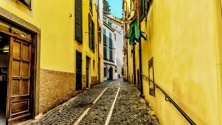 Keywords: venetian italy street road aisle building architecture old cityscape on boat boats landscape vatican cobblestone cobblestone move yellow wall yellow door historical avenue city