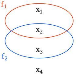 Keywords: Venn-Diagramm mit 4 Elementen und 2 Praedikate.svg Venn-Diagramm mit vier Elementen und zwei Prädikate mit denen jede Teilmengenbeziehung beschreibbar ist own 2006-11-17 User Chrislb Ohne Nutzungsbeschränkung Generic Venn diagrams