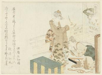 Keywords: Venusschelp- het repareren van een kimono-Rijksmuseum RP-P-1991-668.jpeg accession number RP-P-1991-668 Ryûryûkyo Shinsai; Ryûryûkyo Shinsai born ca died 1825; Tawara Fuchiko; Utamichi Hatsunari credit line nl In een vertrek repareert een vrouw in geknielde houding de kimono van een staande vrouw Naast haar op de grond een doos en een meetlint Met twee gedichten Label Line mentioned on object Ryûryûkyo Shinsai ca 1764 - na 1825 1809 kleurenhoutsnede; blinddruk; lijnblok in zwart met kleurblokken; metaalpigmenten Collection prenten; Japan collectie blad Height mm 137 blad Width mm 186 exhibition history Institution Rijksmuseum paper object history Acquisition 1991 object type prent PD-US PD-old-100 Data and photography rights All data and all images made available through the API are either in the public domain or are subject to a CC0 license https //www rijksmuseum nl/en/api/terms-and-conditions-of-use cc-zero place of creation Japan Forrer 162; Goslings 90 http //www rijksmuseum nl/collectie/RP-P-1991-668 http //hdl handle net/10934/RM0001 COLLECT 422468 handle Venusschelp het repareren van een kimono Uploaded with GWToolset Rijksmuseum RP-P-1991-668 http //www rijksmuseum nl/media/assets/RP-P-1991-668 Images uploaded by Fæ Images from the Rijksmuseum Japanese 19th-century prints in the Rijksmuseum Amsterdam |