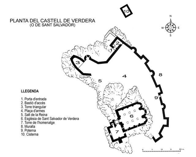 Keywords: Verdera planta.png Planta del castell de Verdera Alt Empordà / Plan of the Verdera castle Alt Empordà realització pròpia reelaborat a partir de Monreal i de Riquer Els castells medievals de Catalunya I 1955 / self-made reworked from Monreal de Riquer Els castells medievals de Catalunya I 1955 2008 Tantarantana PD-self Castell de Verdera Plans of castles in Catalonia |