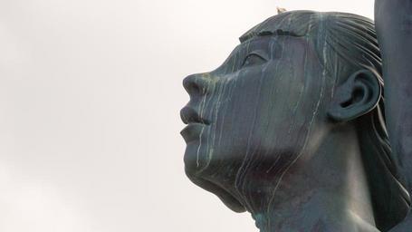 | Keywords: verity stainless steel stainlesssteel bronze statue bronzestatue damien hirst damienhirst sculpture pier harbour ilfracombe devon bristol channel truth modern allegory truth and justice truthandjustice pregnant woman pregnant woman pregnantwoman fetus scales of justice scalesofjustice little dancer littledancer edgar degas edgardegas virgin mother virginmother pangolin polymer-strengthened fibre glass polymerstrengthenedfibreglass fibre glass fibreglass angel of the north angelofthenorth controversial critical ugly seagull white background Verity is a stainless steel and bronze statue created by Damien Hirst. The 20.25-metre (66.4 ft) tall sculpture stands on the pier at the entrance to the harbour in Ilfracombe, Devon, looking out over the Bristol Channel towards South Wales. It has been loaned to the town for 20 years. The name of the piece refers to "truth" and Hirst describes his work as a "modern allegory of truth and justice". The statue depicts a pregnant woman holding aloft a sword while carrying the scales of justice and standing on a pile of law books. Half of the sculpture shows the internal anatomy of the pregnant woman, with the fetus clearly visible. The stance has been described as a reference to Little Dancer of Fourteen Years by Edgar Degas, a work that previously inspired Hirst when he created Virgin Mother. The sculpture was cast in stainless steel and bronze in 40 separate sections by Pangolin Editions. The sword, which gives the statue much of its height, and the upper left arm is one polymer-strengthened fibre glass piece. Before being cleared for erection the statue was subjected to tests in a wind tunnel to ensure that it could cope with high winds and spray from the sea. Measuring 25cm (10 inches) higher than the Angel of the North, Verity became the tallest statue in the UK when it was put into place. Members of North Devon Council referred to the controversial nature of the statue as a potential boost to tourism. Local reaction was very mixed, with those critical of the work calling it "ugly" and stating that "it isn't suitable for a Victorian seaside town". Before they allowed planning permission the council received 100 letters from people who objected to the installation of the statue, and 177 letters supporting the application. In August 2013 councillors announced that the statue had a "tremendous effect" with people visiting the town solely to see Hirst's work. Hirst, who lives in Ilfracombe, has loaned the statue to the town for 20 years starting from its erection on 16 October 2012. Verity is a stainless steel and bronze statue created by Damien Hirst. The 20.25-metre (66.4 ft) tall sculpture stands on the pier at the entrance to the harbour in Ilfracombe, Devon, looking out over the Bristol Channel towards South Wales. It has been loaned to the town for 20 years. The name of the piece refers to "truth" and Hirst describes his work as a "modern allegory of truth and justice". The statue depicts a pregnant woman holding aloft a sword while carrying the scales of justice and standing on a pile of law books. Half of the sculpture shows the internal anatomy of the pregnant woman, with the fetus clearly visible. The stance has been described as a reference to Little Dancer of Fourteen Years by Edgar Degas, a work that previously inspired Hirst when he created Virgin Mother. The sculpture was cast in stainless steel and bronze in 40 separate sections by Pangolin Editions. The sword, which gives the statue much of its height, and the upper left arm is one polymer-strengthened fibre glass piece. Before being cleared for erection the statue was subjected to tests in a wind tunnel to ensure that it could cope with high winds and spray from the sea. Measuring 25cm (10 inches) higher than the Angel of the North, Verity became the tallest statue in the UK when it was put into place. Members of North Devon Council referred to the controversial nature of the statue as a potential boost to tourism. Local reaction was very mixed, with those critical of the work calling it "ugly" and stating that "it isn't suitable for a Victorian seaside town". Before they allowed planning permission the council received 100 letters from people who objected to the installation of the statue, and 177 letters supporting the application. In August 2013 councillors announced that the statue had a "tremendous effect" with people visiting the town solely to see Hirst's work. Hirst, who lives in Ilfracombe, has loaned the statue to the town for 20 years starting from its erection on 16 October 2012. |