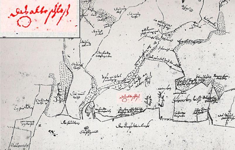 | Keywords: Vermessungsblatt Oeder 1600.jpg en Old map of the area of the artificial ruin near Pillnitz around 1600 de Oberer Bereich von Pillnitz Ausschnitt aus einem Vermessungsblatt um 1600 entnommen aus Die erste Landesvermessung des Kurstaates Sachsen auf Befehl des Kurfürsten Christian I ausgeführt von Matthias Oeder; 1586 “1607 Entnommen aus Hartmann Hans-Günther Pillnitz Schloss Park und Dorf; Weimar 1996 ISBN 3-7400-0995-0 S 28 Oeder Matthias 1600 Ruine Pillnitz PD-old-100-1923 | ||||