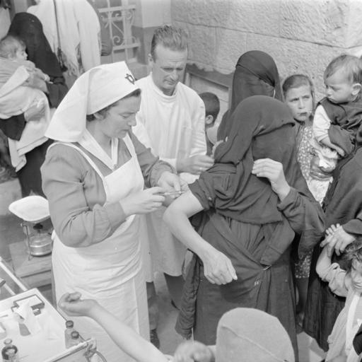 | Keywords: polio clinic shot innoculation vaccine veil woman nurse 1948 1940s forties israel hijab niqab willem van de poll willemvandepoll blackandwhite people monochrome black and white 255-0950 Nationaal Archief/Willem van de Poll Nederlands: Volwassenen en kinderen in een polikliniek terwijl een verpleegkundige een gesluierde vrouw een injectie toedient. Israël, 1 januari 1948. English: Nurse injecting a veiled woman. Israel, location unknown, 1948. Hebt u meer informatie over deze foto, laat het ons weten. Laat een reactie achter (als u ingelogd bent bij Flickr) of stuur een mailtje naar: flickrthecommons@nationaalarchief.nl Please help us gain more knowledge on the content of our collection by simply adding a comment with information. If you do not wish to log in, you can write an e-mail to: flickrthecommons@nationaalarchief.nl Meer foto’s van het Nationaal Archief zijn te vinden op onze beeldbank: beeldbank.nationaalarchief.nl/ 255-0950 Nationaal Archief/Willem van de Poll Nederlands: Volwassenen en kinderen in een polikliniek terwijl een verpleegkundige een gesluierde vrouw een injectie toedient. Israël, 1 januari 1948. English: Nurse injecting a veiled woman. Israel, location unknown, 1948. Hebt u meer informatie over deze foto, laat het ons weten. Laat een reactie achter (als u ingelogd bent bij Flickr) of stuur een mailtje naar: flickrthecommons@nationaalarchief.nl Please help us gain more knowledge on the content of our collection by simply adding a comment with information. If you do not wish to log in, you can write an e-mail to: flickrthecommons@nationaalarchief.nl Meer foto’s van het Nationaal Archief zijn te vinden op onze beeldbank: beeldbank.nationaalarchief.nl/ |