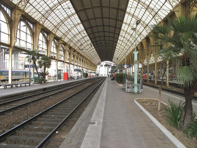 Keywords: Verrière de la gare de Nice.jpg en Transparent roof and platforms of the train station of Nice France fr Verrière et quais de la gare de Nice own Tangopaso 2011-04-03 43 42 16 22 N 7 15 39 74 E region FR_heading ENE Gare de Nice-Ville Transparent roofs in France Train sheds in France |