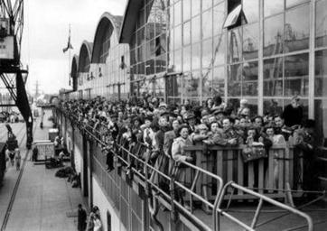 Keywords: emigranten arch window glass pane women people ss volendam ssvolendam canada blackandwhite monochrome black and white Spaarnestad Photo/SFA001009986 Emigranten naar Canada wachten in Rotterdam tot zij aan boord kunnen van de S.S. "Volendam". Nederland, Rotterdam, 15 mei 1951. Spaarnestad Photo/SFA001009986 Emigranten naar Canada wachten in Rotterdam tot zij aan boord kunnen van de S.S. "Volendam". Nederland, Rotterdam, 15 mei 1951. |
