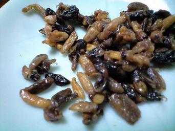 Keywords: Vespula flaviceps tsukudani.jpg en The kanroni candied of vespula flaviceps that is local specialties around Shinshu Nagano Japan ja へぼ クロスズメバチ の甘 煮 信州周辺 域の郷 料理 own takami torao 2009-02-21 Insects in Japanese cuisine