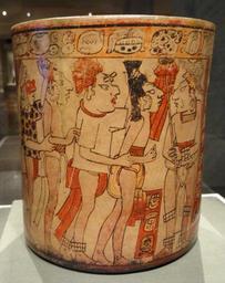| Keywords: Vessel with Battle Scene, 600-900 AD, Mesoamerica, Guatemala, Nebaj region, Maya, ceramic and slip, view 2 - Cleveland Museum of Art - DSC08799.JPG en Exhibit in the Cleveland Museum of Art Cleveland Ohio USA Photography was permitted in the museum without restriction This artwork is old enough so that it is in the public domain Daderot 2012-09-07 14 57 58 Daderot cc0 cc0 Mayan art in the Cleveland Museum of Art Nebaj Maya cylinder vases | ||||