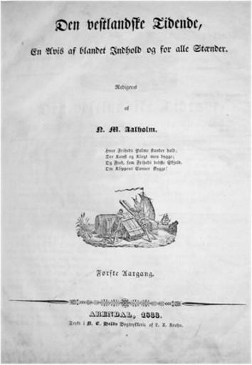 Keywords: Vestlandske Tidende No 1 1832 1.jpg en Frontpage of the first edition of Den vestlandske Tidende 31 July 1832 1832-07-31 Den vestlandske Tidende No 1 Første Aargang - 31 juli 1832 http //www vineta no/Arendals_bokhistorie_Vestlandske_Tidende html scan Den vestlandske Tidende Pd-old-100 Uploaded with UploadWizard 1832 in Norway Newspapers of Norway Economy of Arendal Culture of Arendal |