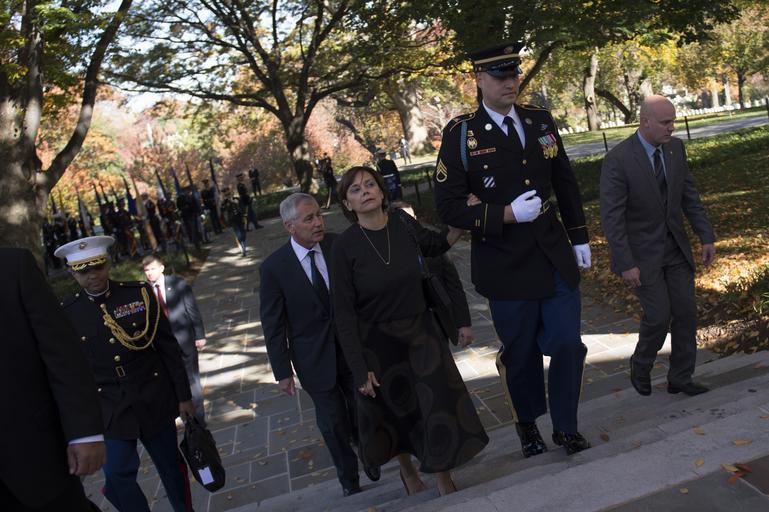| Keywords: Veterans Day at Arlington National Cemetery 141111-D-DT527-075.jpg en Secretary of Defense Chuck Hagel and his wife Lilibet arrive at Arlington National Cemetery in Virginia Nov 11 2014 for a Veterans Day wreath laying ceremony at the Tomb of the Unknown Soldier Photo by Master Sgt Adrian Cadiz Released Unit Defense Imagery Management Operations Center DVIDS Tags Department of Defense; DoD; Secretary of Defense; DIMOC; SecDef; Chuck Hagel; DVIDS Bulk Import 2014-11-11 Master Sgt Adrian Cadiz https //www dvidshub net/image/1666415/veterans-day-arlington-national-cemetery 141111-D-DT527-075 2014-11-20 22 56 ARLINGTON NATIONAL CEMETERY VA US PD-USGov Chuck Hagel Arlington National Cemetery Veterans Day 2014 Images from DoD uploaded by Fæ |