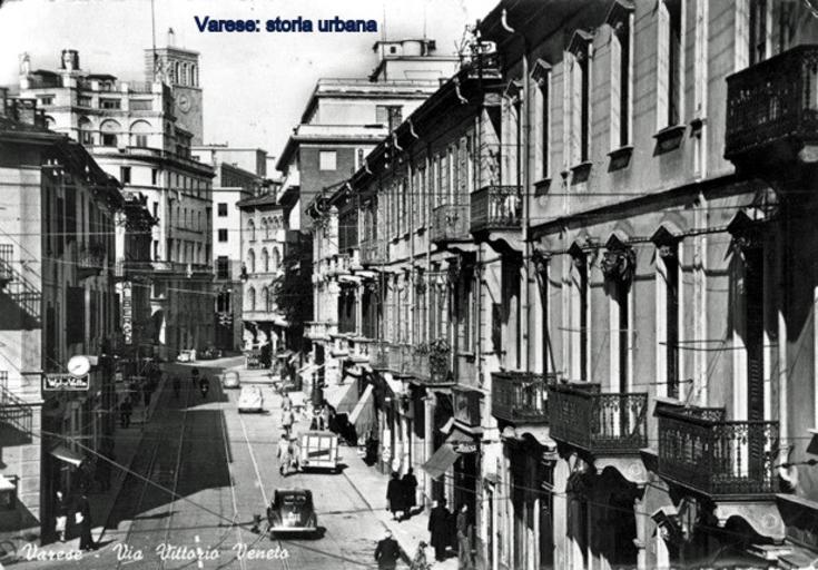 Keywords: Vista di via Vittorio Veneto presa da piazza XX settembre. L'edificio a sinistra che fa angolo con via Mazzini non è ancora stato sostituito dal grande magazzino. varese viavittorioveneto